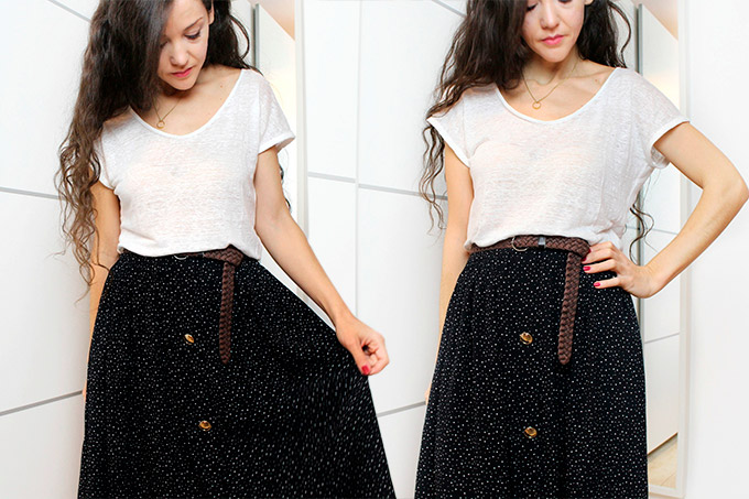 En post de hoy tengo una invitada especial, porque Esther del blog lookanddiy y yo hemos hecho una colaboración. Ella va hacer una prenda siguiendo uno de mis tutoriales y yo voy hacer los mismos con uno de los suyos. Pincha aquí para ver su vídeo. Mi propuesta es esta bonita falda midi con abotonadura central. El día que vi el vídeo me encanto y cuando me propuso hacer este vídeo tuve claro que quería recrearla. En el vídeo te explico cómo la hecho pero no me centro en el detalle para eso tenemos el vídeo de Esther, te lo dejo por aquí.