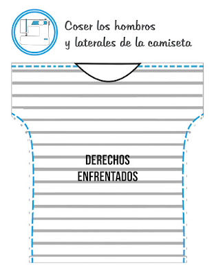 Ahora es el momento de coser el cuerpo de la camiseta, tanto por los hombros, como por los laterales de la misma.