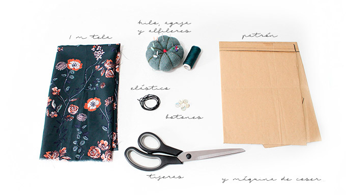 El elástico que he usado es cordón elástico de 1mm, además de 5 botones nacarados. En la foto hay 6 porque iba a poner 6 pero me di cuenta de que con 6 la parte de la arriba del vestido quedaba muy larga.