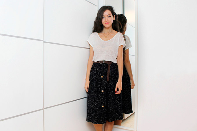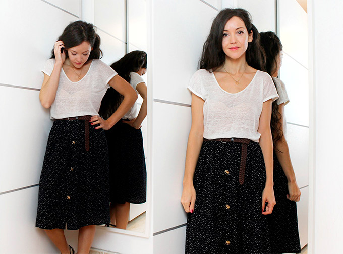 En post de hoy tengo una invitada especial, porque Esther del blog lookanddiy y yo hemos hecho una colaboración. Ella va hacer una prenda siguiendo uno de mis tutoriales y yo voy hacer los mismos con uno de los suyos. Pincha aquí para ver su vídeo. Mi propuesta es esta bonita falda midi con abotonadura central. El día que vi el vídeo me encanto y cuando me propuso hacer este vídeo tuve claro que quería recrearla. En el vídeo te explico cómo la hecho pero no me centro en el detalle para eso tenemos el vídeo de Esther, te lo dejo por aquí.